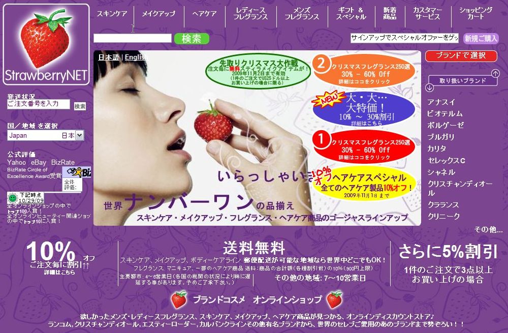 管理人がお勧めする激安海外ブランドコスメ、『ストロベリーネット』ですが、たまにですが何かの間違いで英語のページにジャンプしてしまうというアクシデントがある事があります。